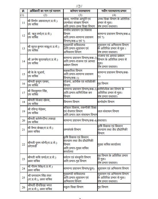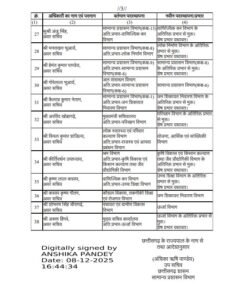 जारी आदेश के अनुसार, कई महत्वपूर्ण विभागों में जिम्मेदारियों का पुनर्विन्यास किया गया है, जिससे प्रशासनिक कार्यों में तेजी और दक्षता लाने की मंशा साफ दिखाई देती है। स्थानांतरण सूची में विभिन्न जिलों, निगमों और विभागों में कार्यरत अधिकारियों को शामिल किया गया है।