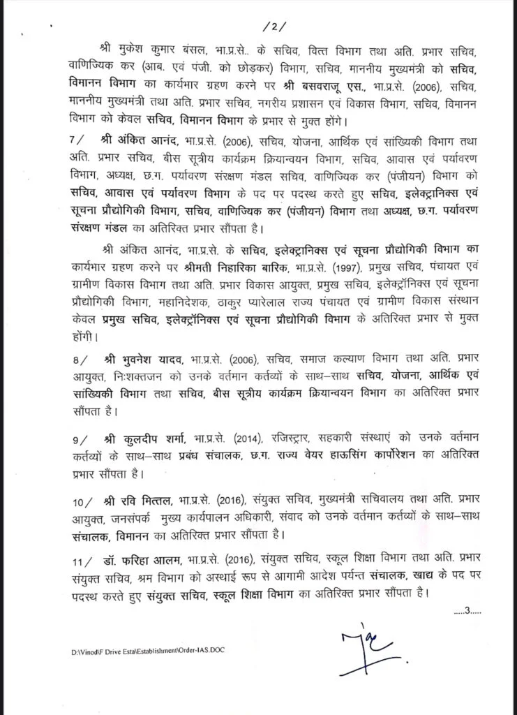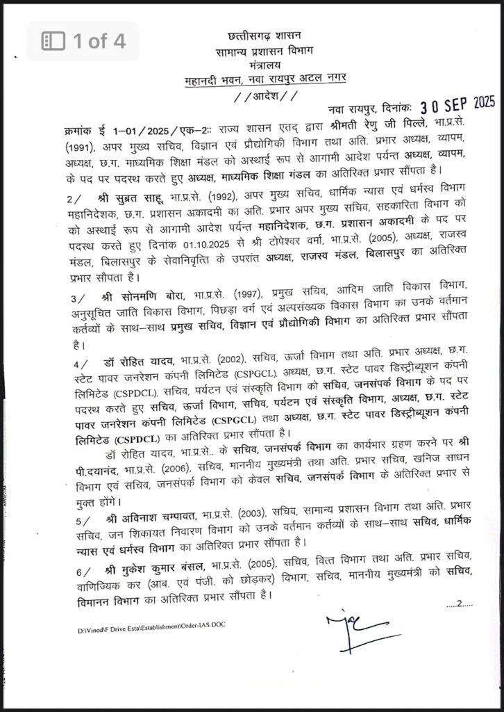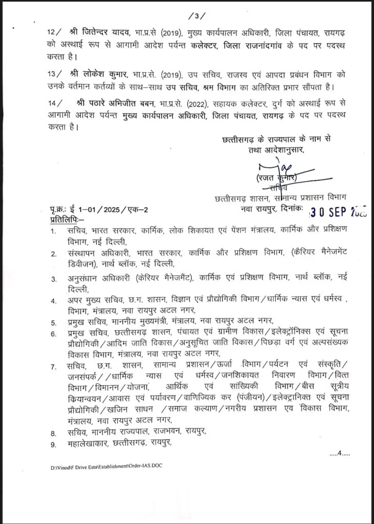 रायपुर। राज्य सरकार ने आज प्रशासनिक व्यवस्था को और मजबूत बनाने के लिए आईएएस अधिकारियों के बड़े फेरबदल का ऐलान किया। इस सर्जरी में कुल 14 आईएएस अधिकारी प्रभावित हुए हैं, जिनमें कुछ कलेक्टर और उच्च स्तरीय अधिकारी शामिल हैं।
