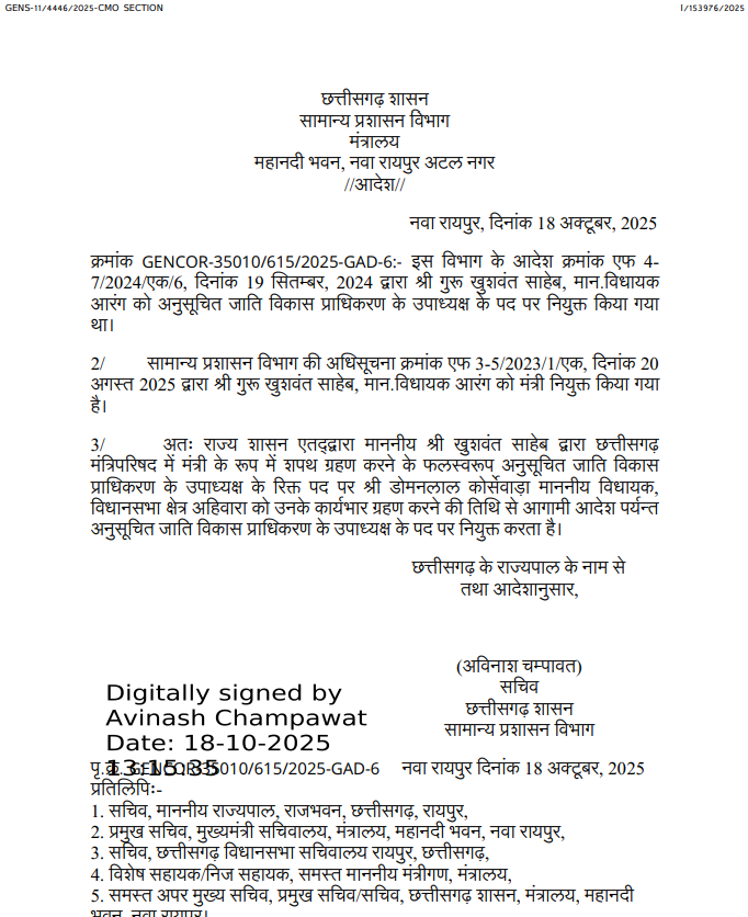 Cg Breaking | Ahiwara MLA Domnalal Korsevada gets a big responsibility