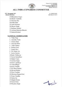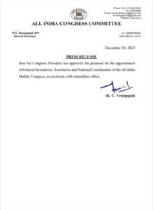 महिला कांग्रेस की ओर से जारी सूची में इन नियुक्तियों की आधिकारिक पुष्टि कर दी गई है। संगठन में इन बदलावों को आगामी राजनीतिक गतिविधियों और संगठनात्मक मजबूती के लिहाज से अहम माना जा रहा है।
