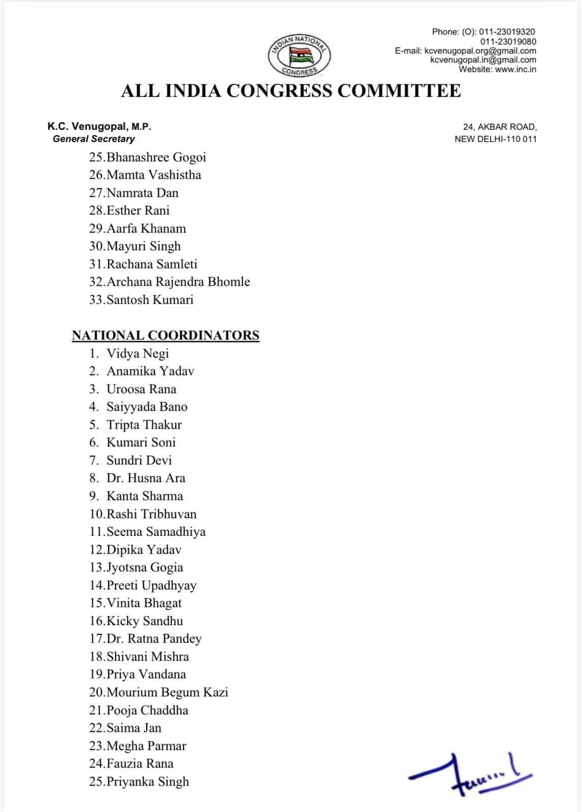 महिला कांग्रेस की ओर से जारी सूची में इन नियुक्तियों की आधिकारिक पुष्टि कर दी गई है। संगठन में इन बदलावों को आगामी राजनीतिक गतिविधियों और संगठनात्मक मजबूती के लिहाज से अहम माना जा रहा है।