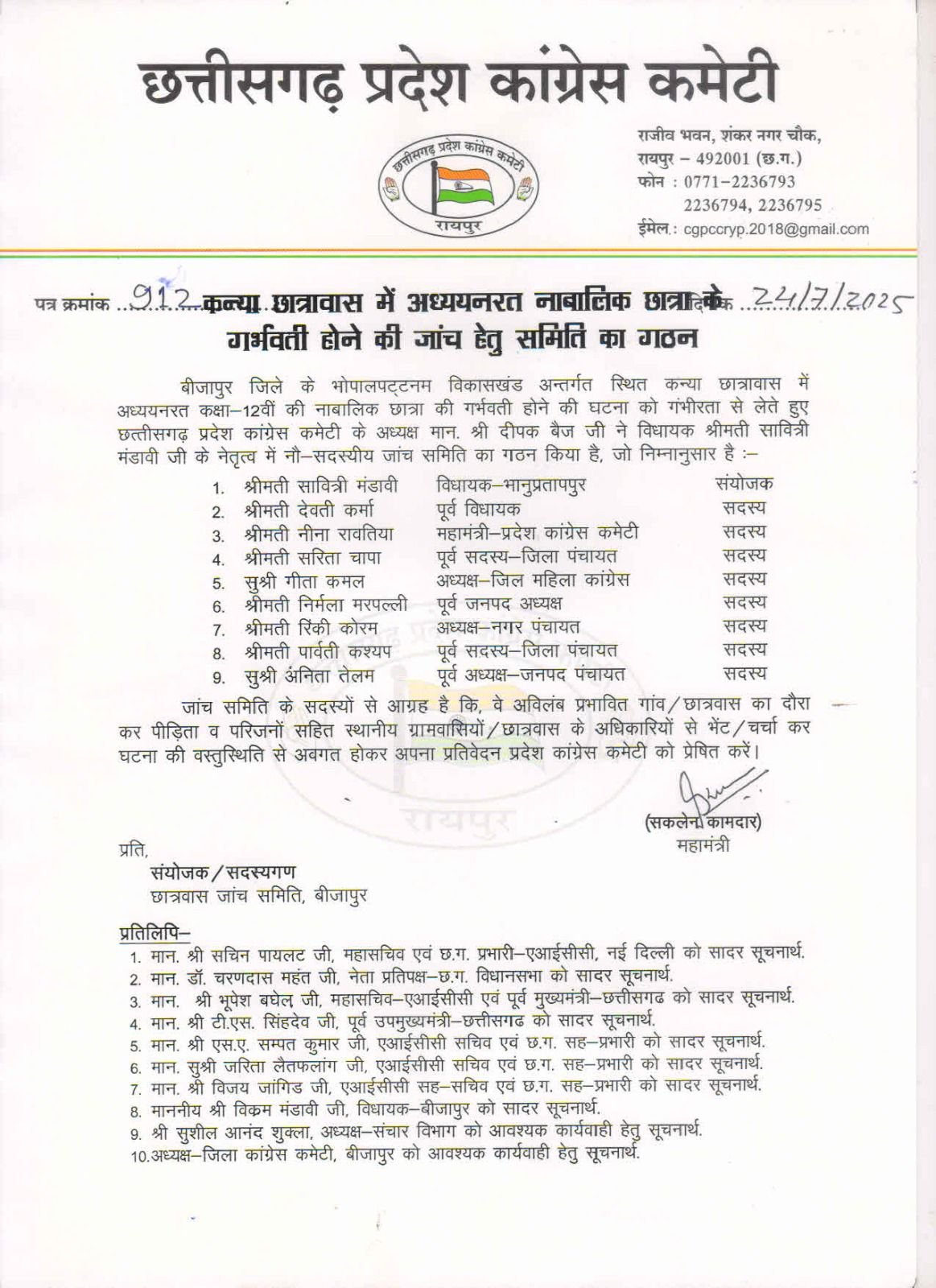 Chhattisgarh | Bijapur student case, Congress formed a 9-member investigation committee, layers of truth will be revealed!