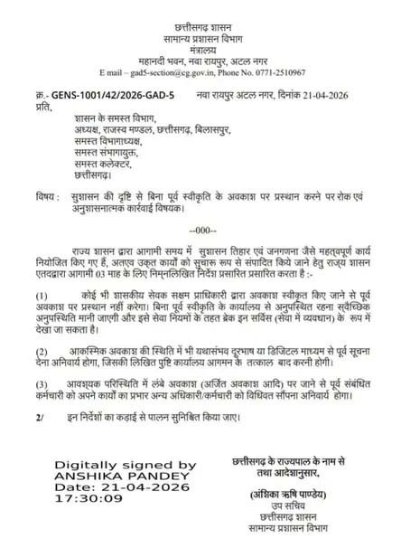 Chhattisgarh Government issues major order, action will be taken if leave is taken without permission