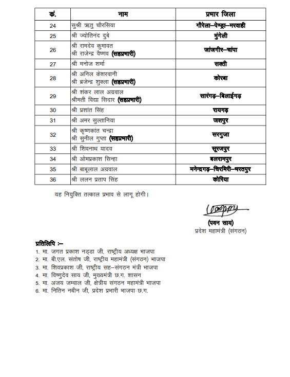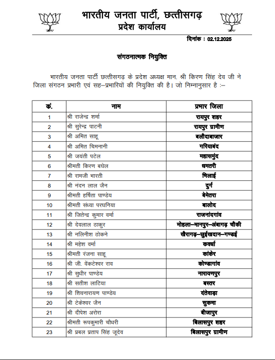 Chhattisgarh: Major reshuffle in BJP, 36 assembly in-charges given responsibility simultaneously