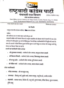 रायपुर। छत्तीसगढ़ एनसीपी (पंचायती राज विभाग) में नई नियुक्तियों की घोषणा की गई है। राष्ट्रवादी कांग्रेस पार्टी पंचायत विभाग के राष्ट्रीय महासचिव श्रीकांत कसेर की सहमति और प्रदेश अध्यक्ष मनोज कुमार गुप्ता के निर्देश पर कई पदाधिकारियों को जिम्मेदारियाँ सौंपी गई हैं। पार्टी ने बताया कि यह नियुक्तियां संगठन को जमीनी स्तर पर मजबूत करने के उद्देश्य से की गई हैं।