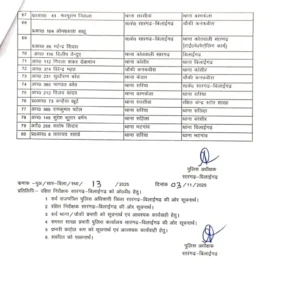सारंगढ़-बिलाईगढ़। जिले में पुलिस विभाग में बड़ा प्रशासनिक बदलाव किया गया है। पुलिस अधीक्षक आञ्जनेय वार्ष्णेय ने सोमवार को 80 पुलिसकर्मियों के तबादले का आदेश जारी किया है। इसमें 16 प्रधान आरक्षक और 64 आरक्षक एवं महिला आरक्षक शामिल हैं।