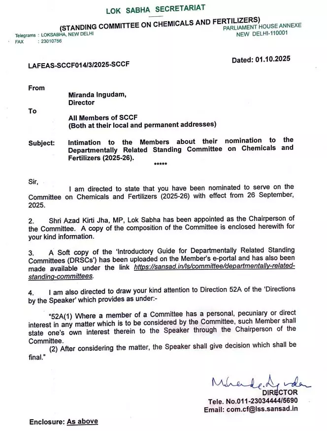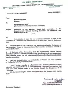अग्रवाल ने अपने संसदीय जीवन में सदैव लोकहित के मुद्दों को प्रभावी ढंग से उठाया है। अब इस नई जिम्मेदारी के तहत वे देश की उर्वरक नीति, रासायनिक उद्योगों की मजबूती और कृषि क्षेत्र की उन्नति से जुड़े महत्वपूर्ण विषयों पर कार्य करेंगे।