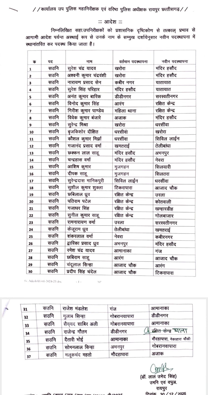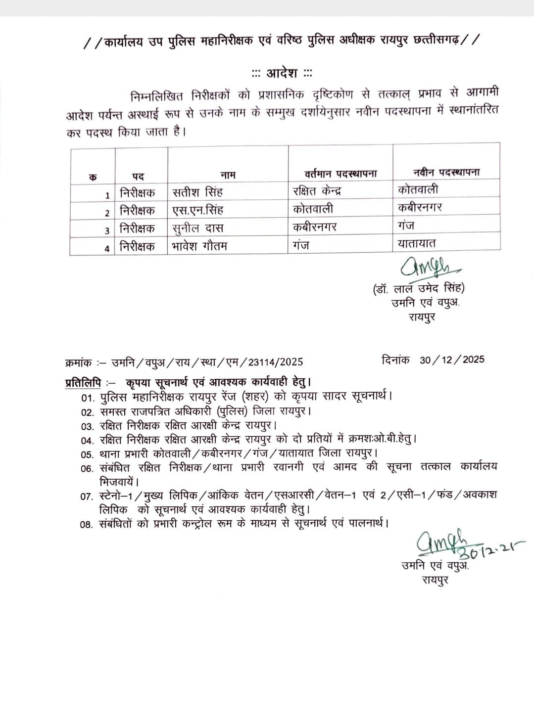 Raipur Police Transfer | SSP takes major action before the new year, changes command of police stations
